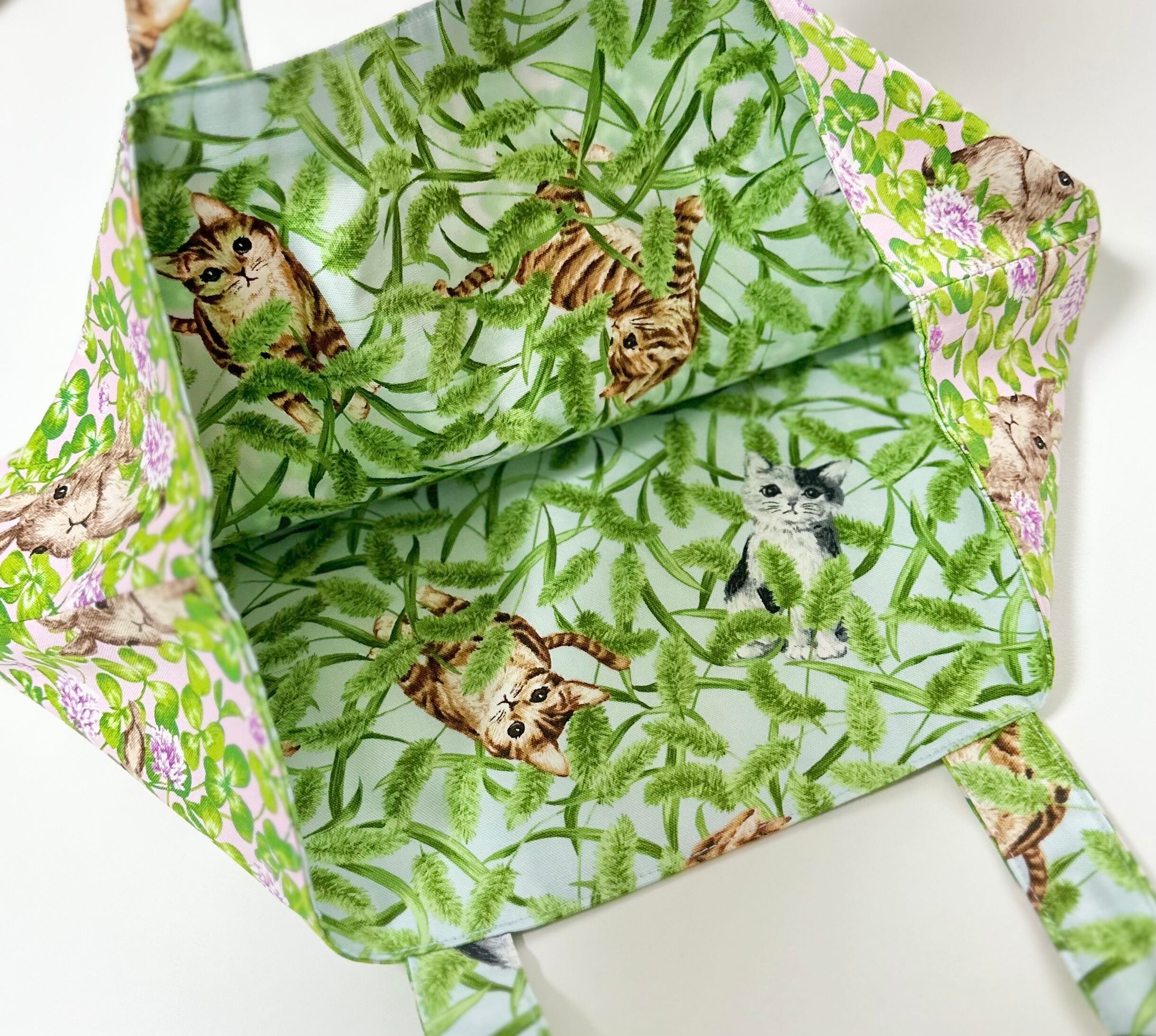 うさぎとねこのどちらも可愛いリバーシブルのバッグが出来ました☆