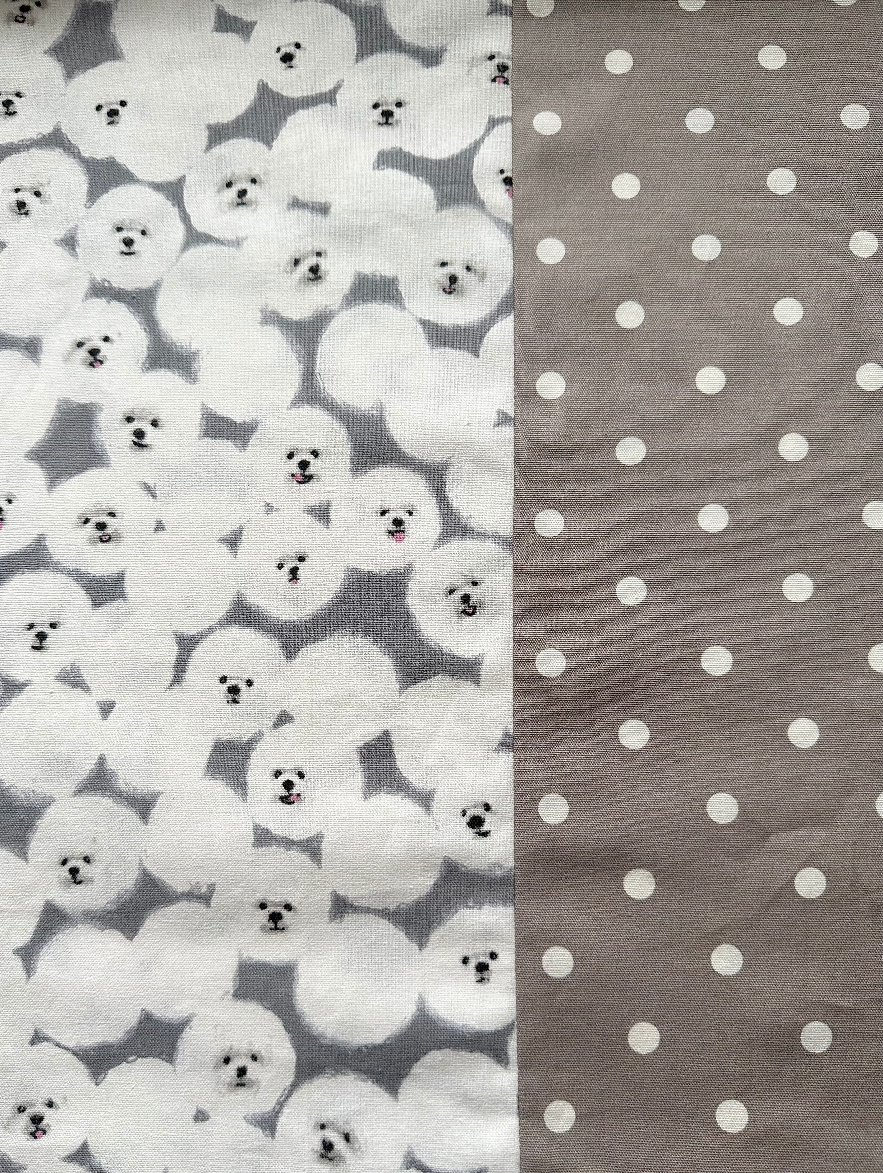 雲のようなビションフリーゼちゃんたちがふわふわしている可愛い生地を使用しました⭐︎