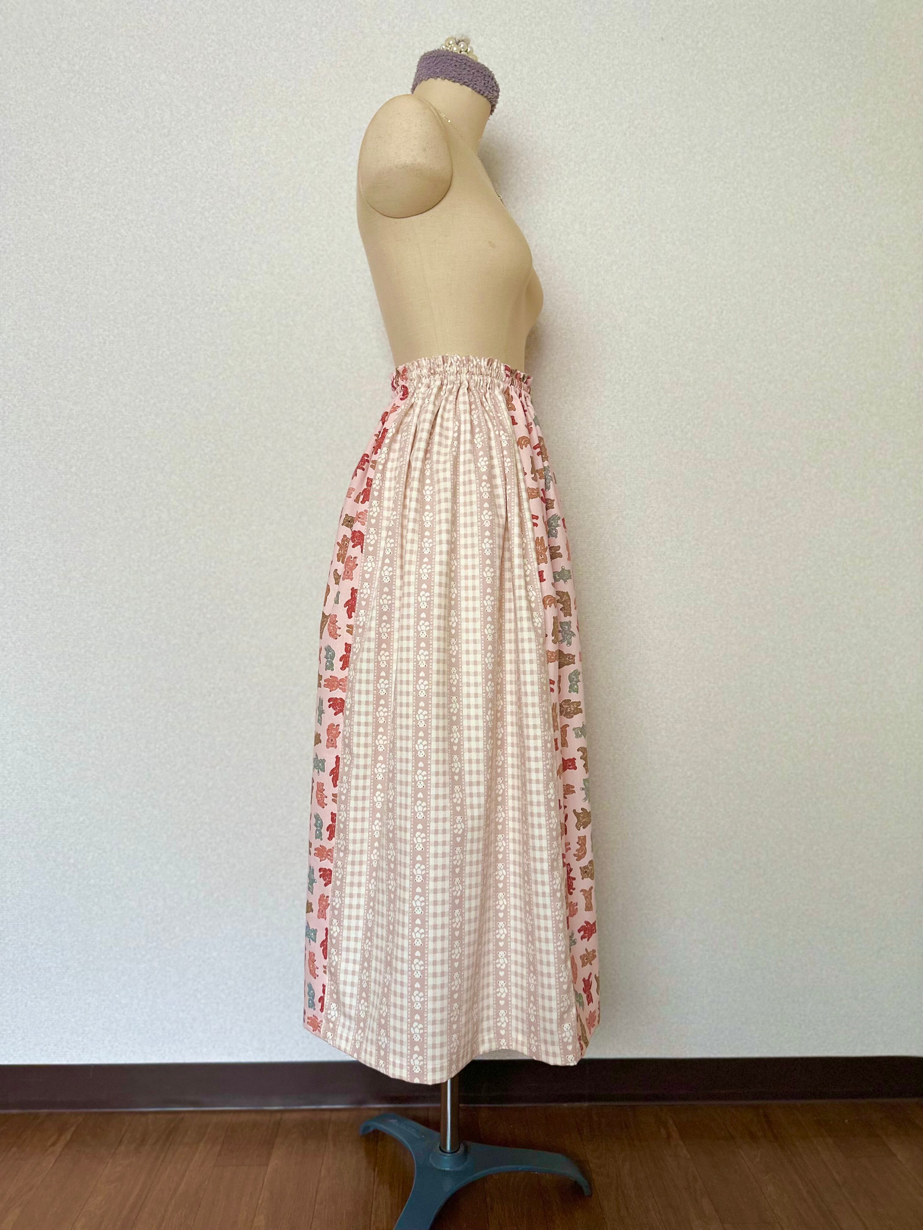 ピンクのテディベアの柔らかい色合いの生地を使用しました☆