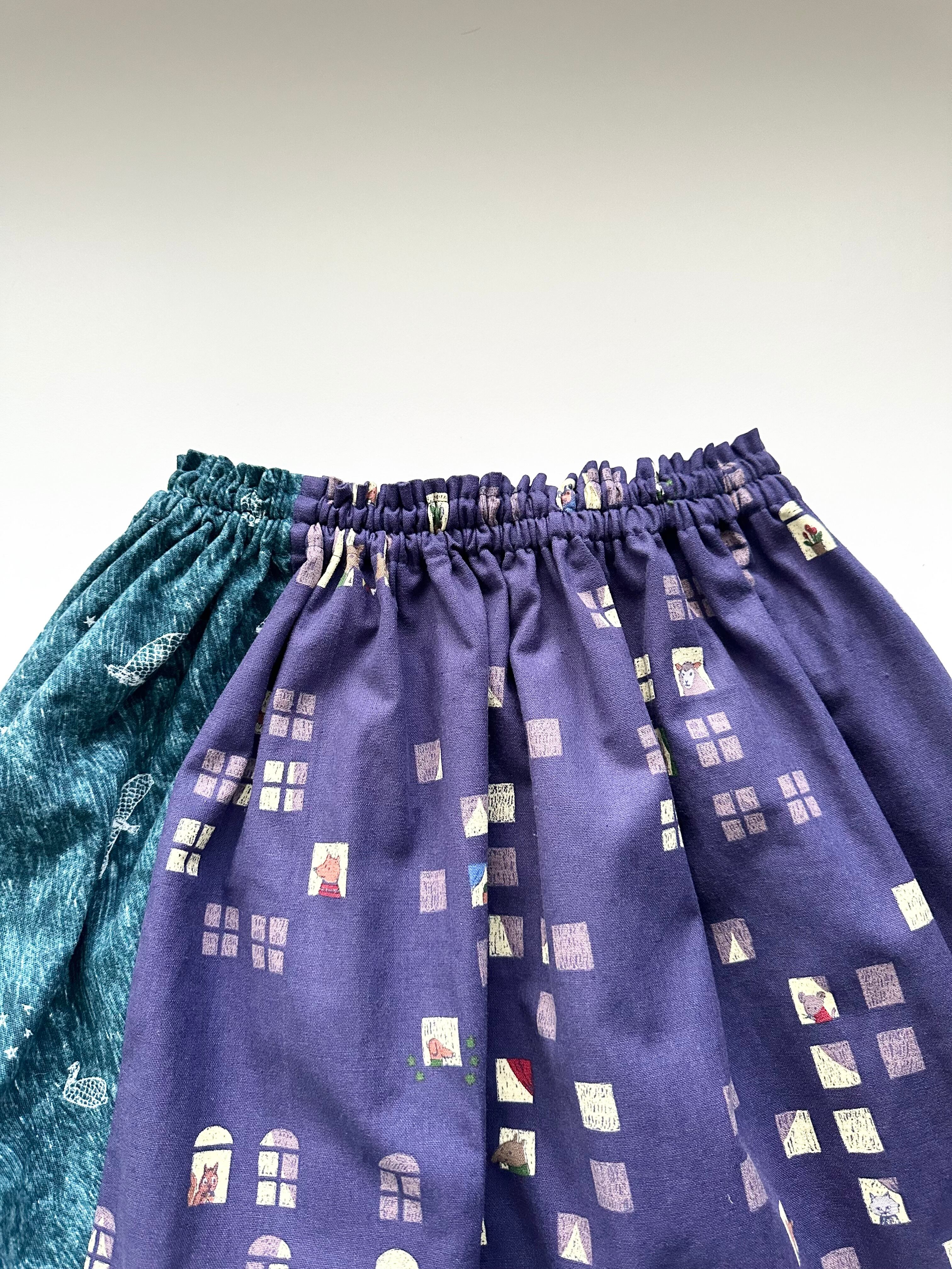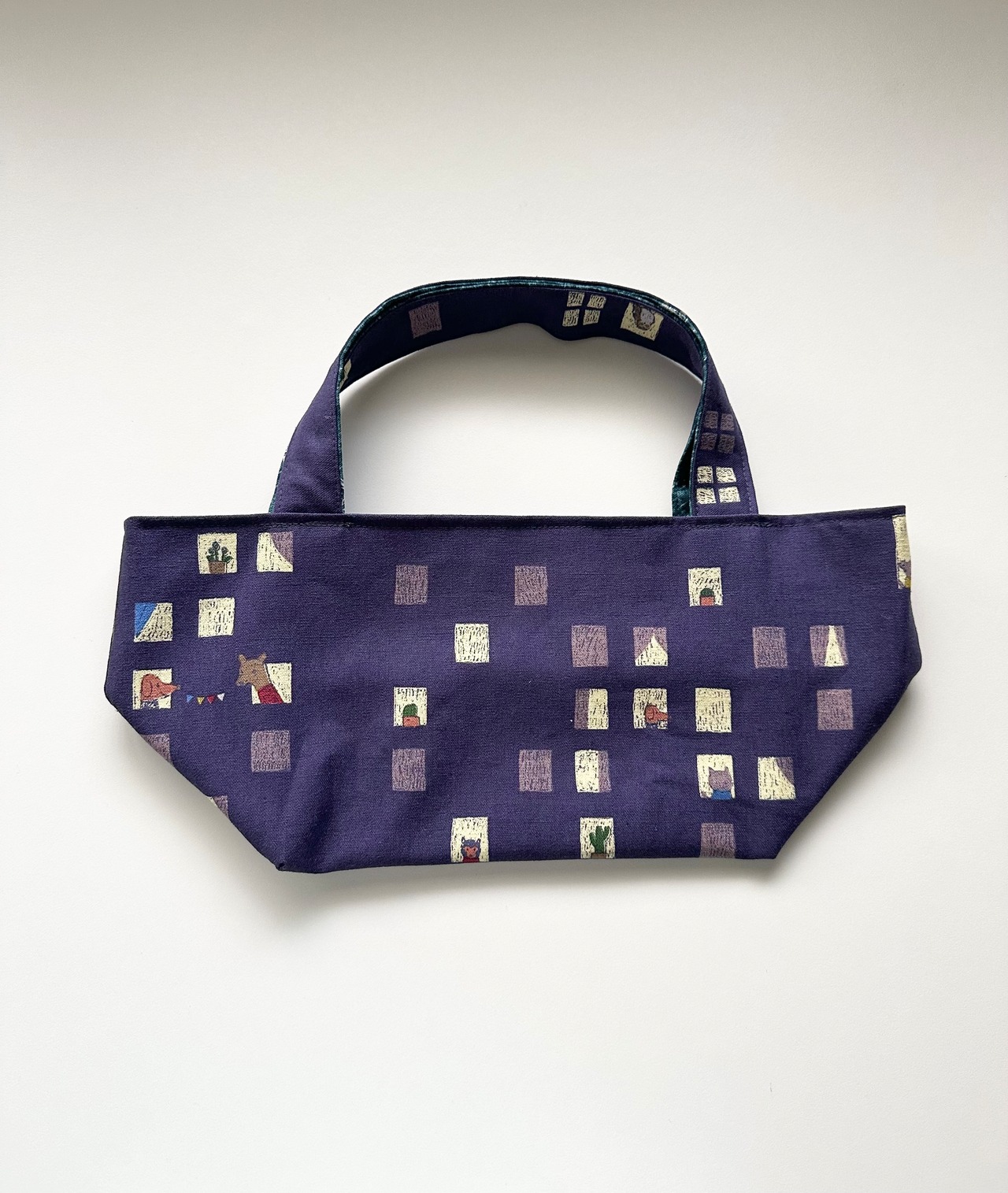 窓から覗くどうぶつと鳥さんのスカートとミニバッグ コットンリネン