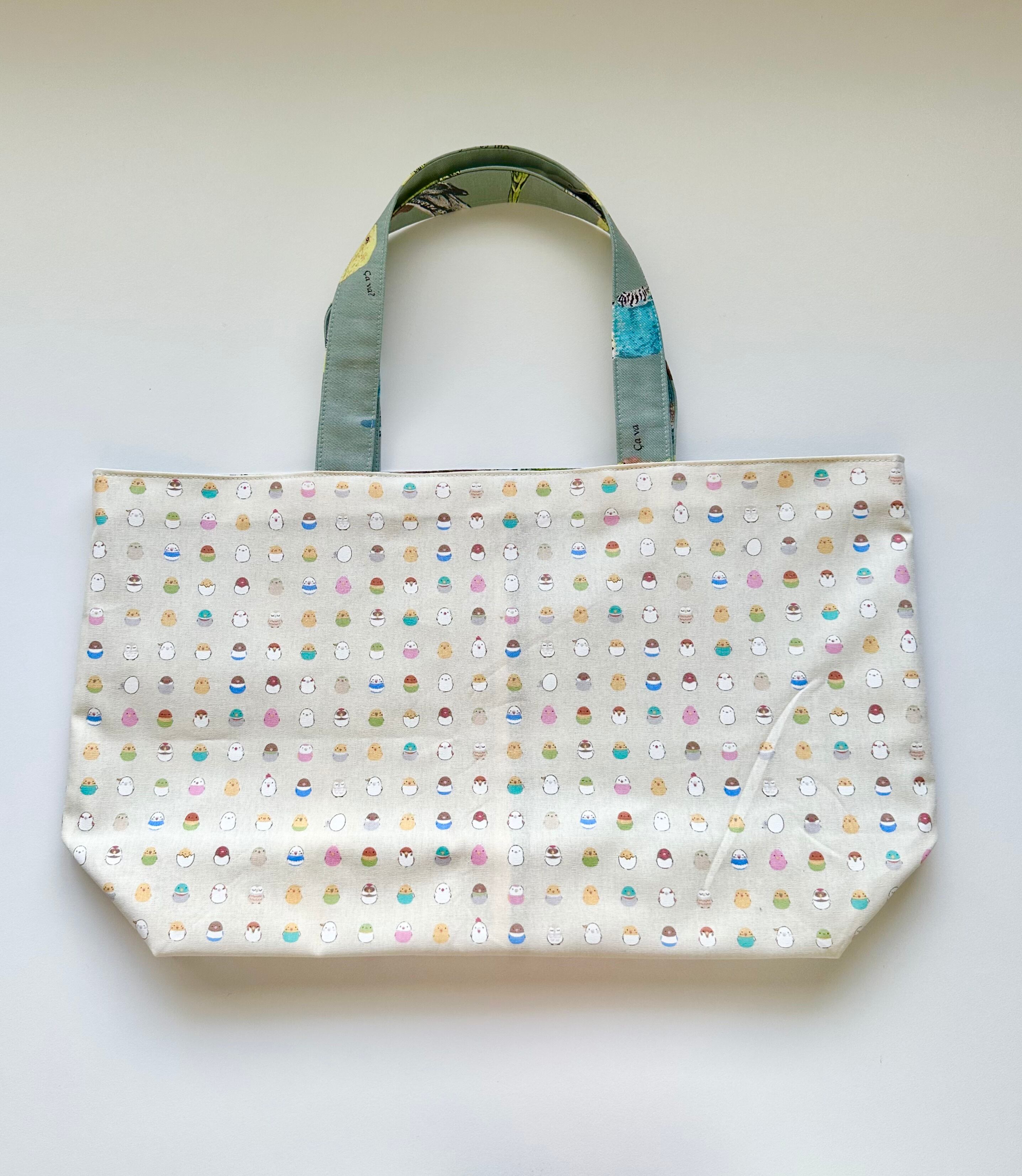 見せ方色々♪ インコと草原のリバーシブルバッグ 大きめトートバッグ