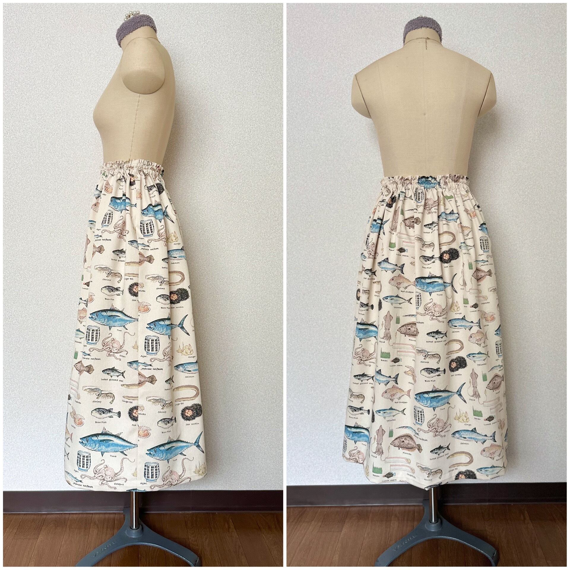 お寿司ネタ 魚柄 コットンスカート ロングスカート