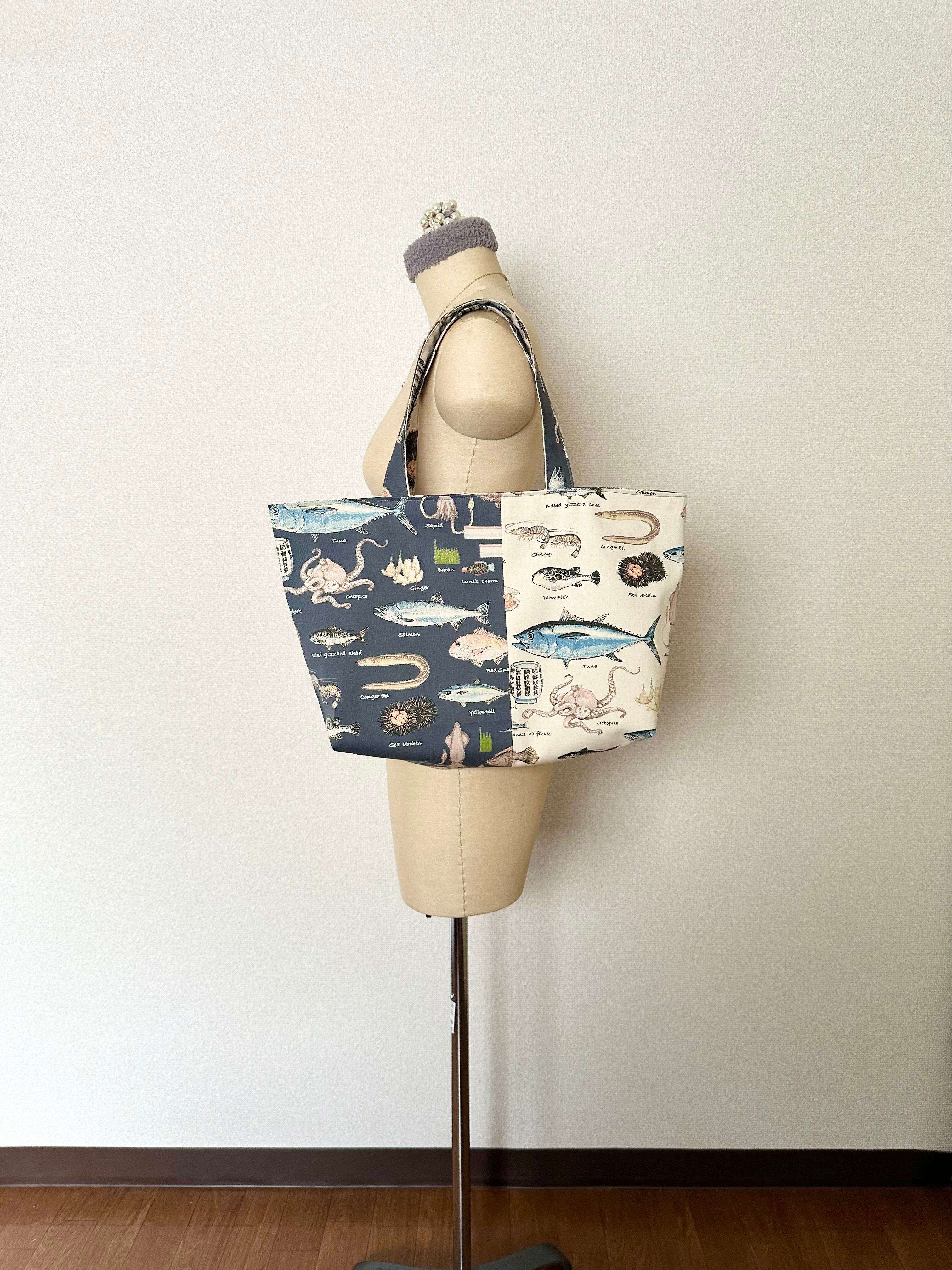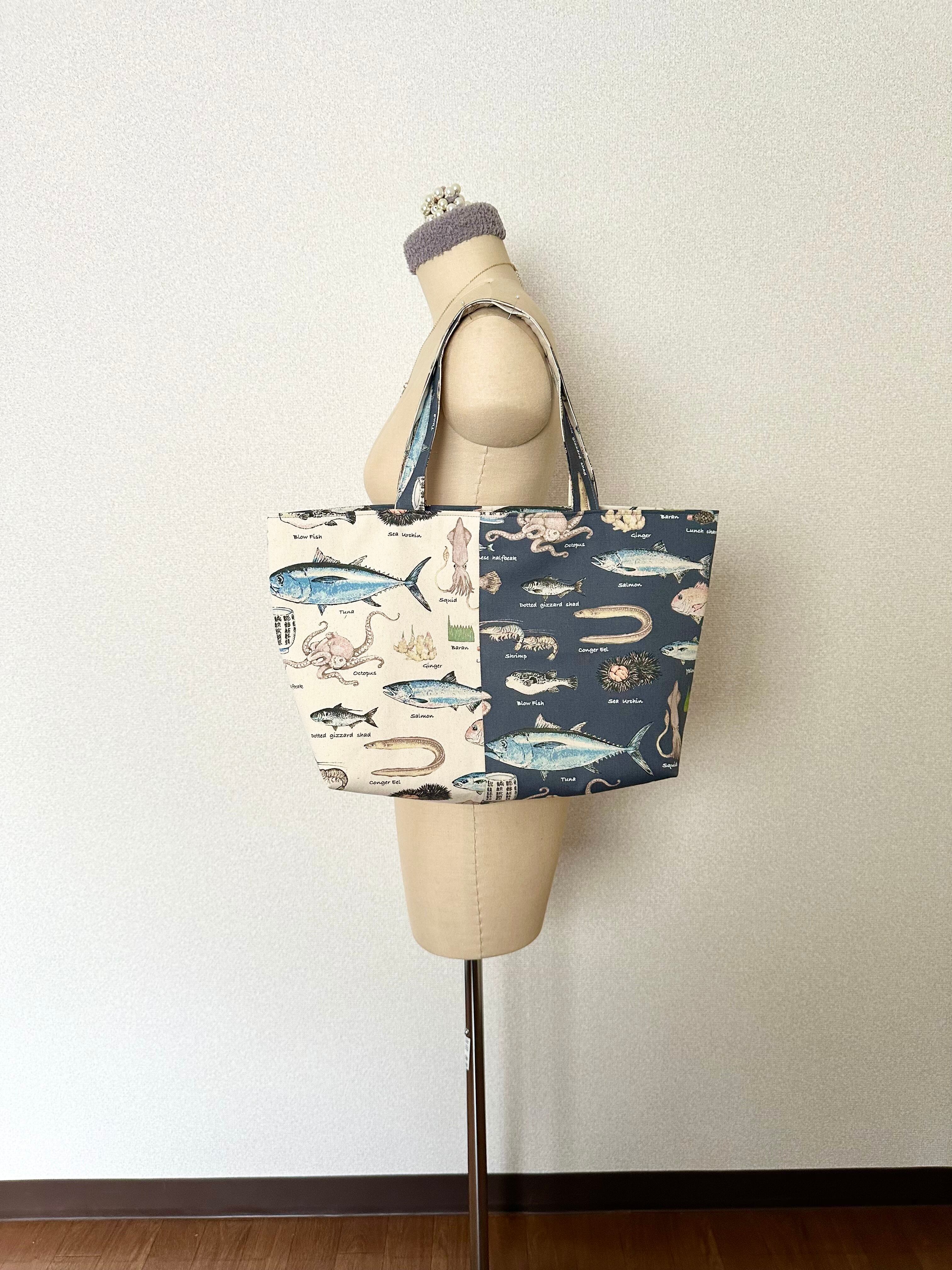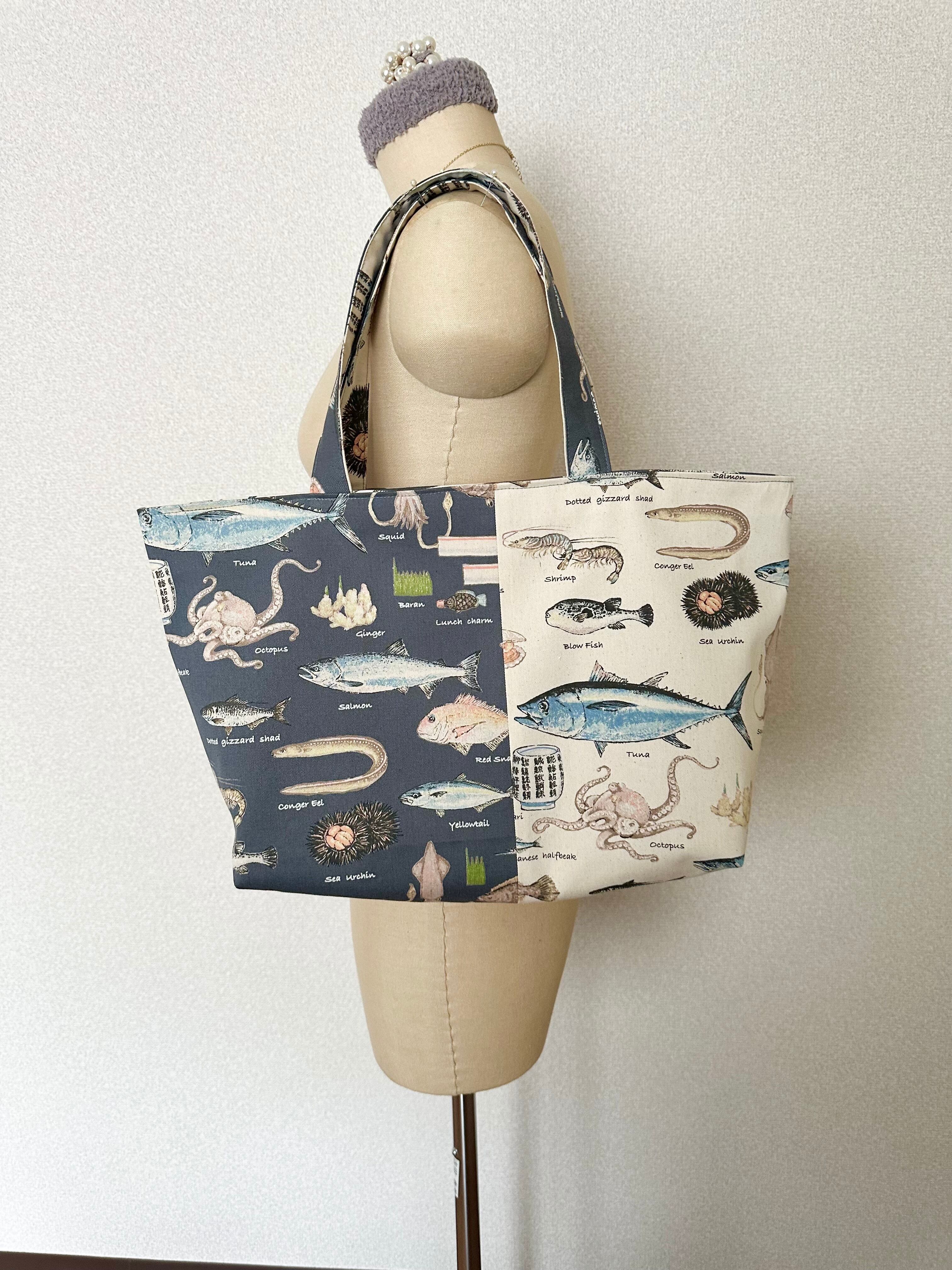 お寿司ネタ 魚柄 リバーシブルバッグ トートバッグ