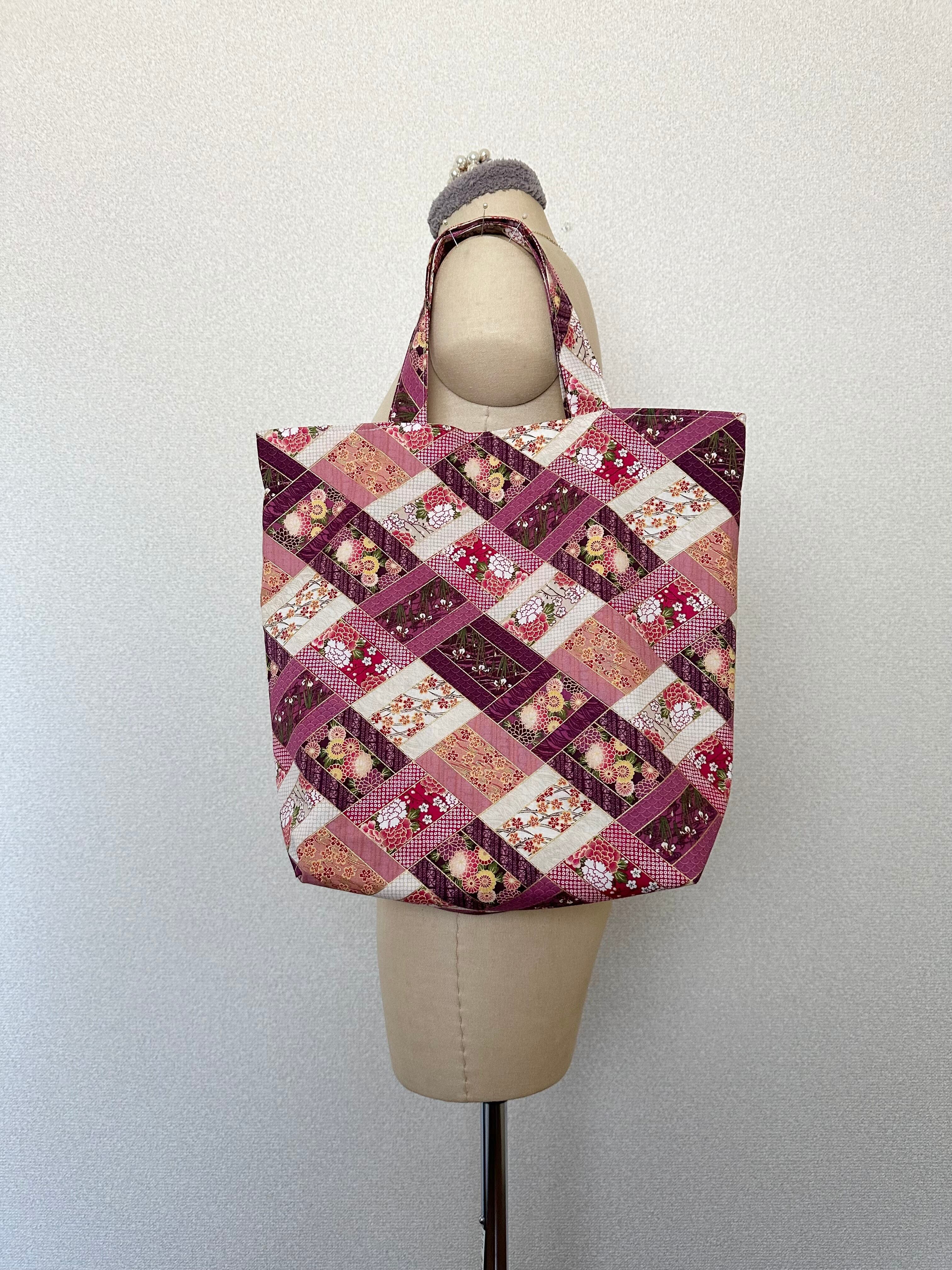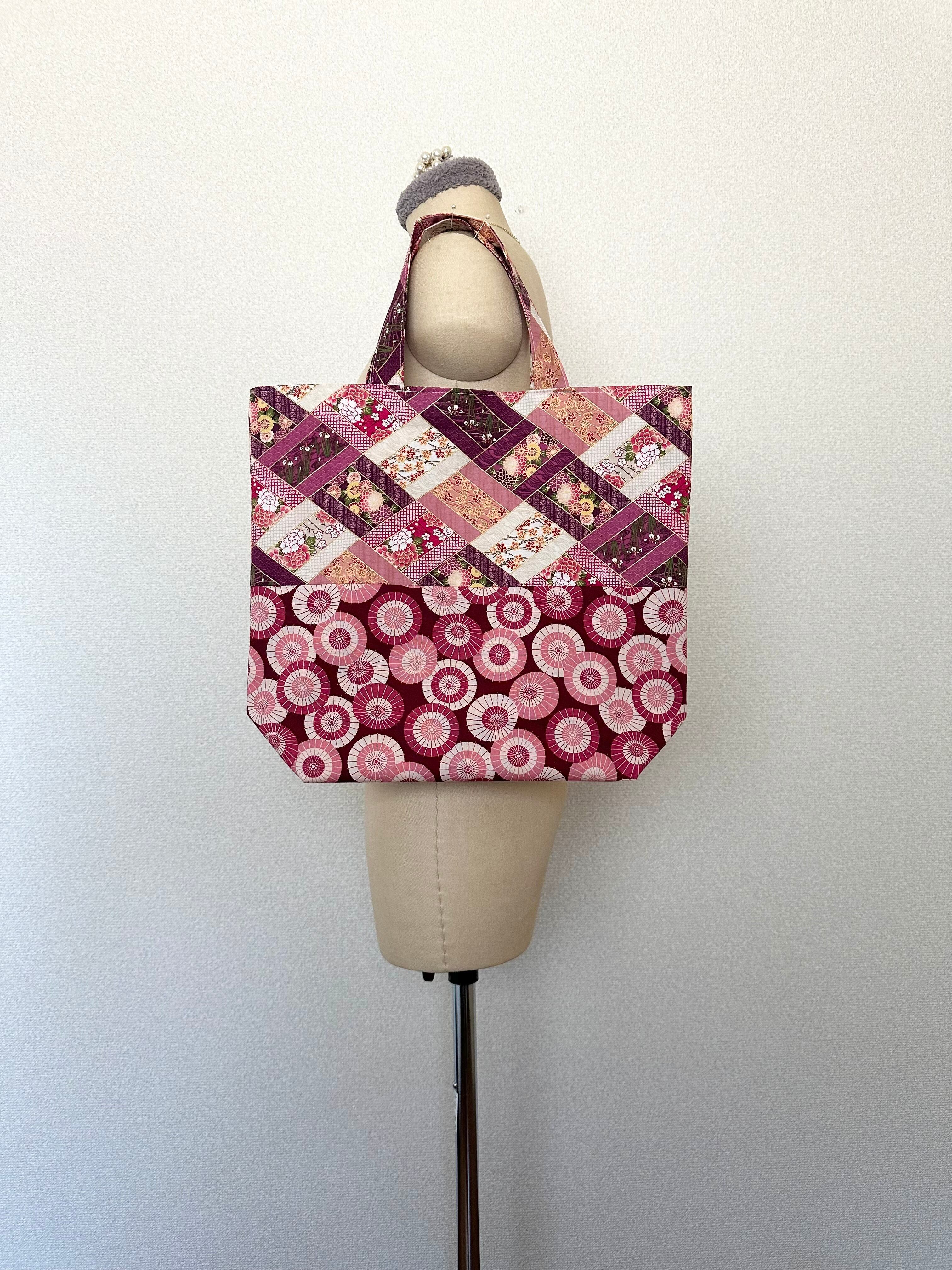 和傘が描かれた生地と合わせ、華やかなバッグが出来ました。