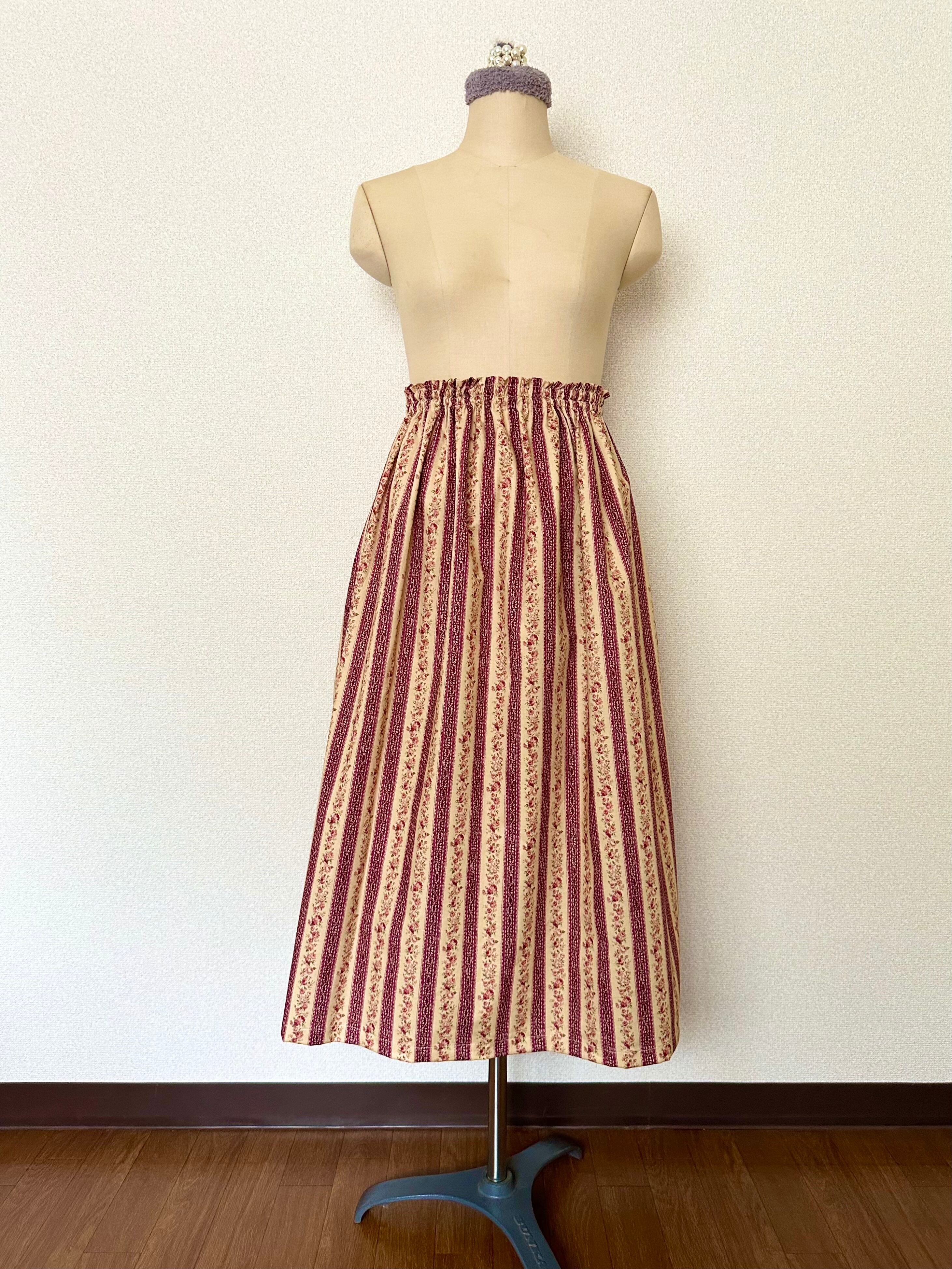 ロマンティックなバラ柄スカート コットンスカート ロングスカート ギャザースカート