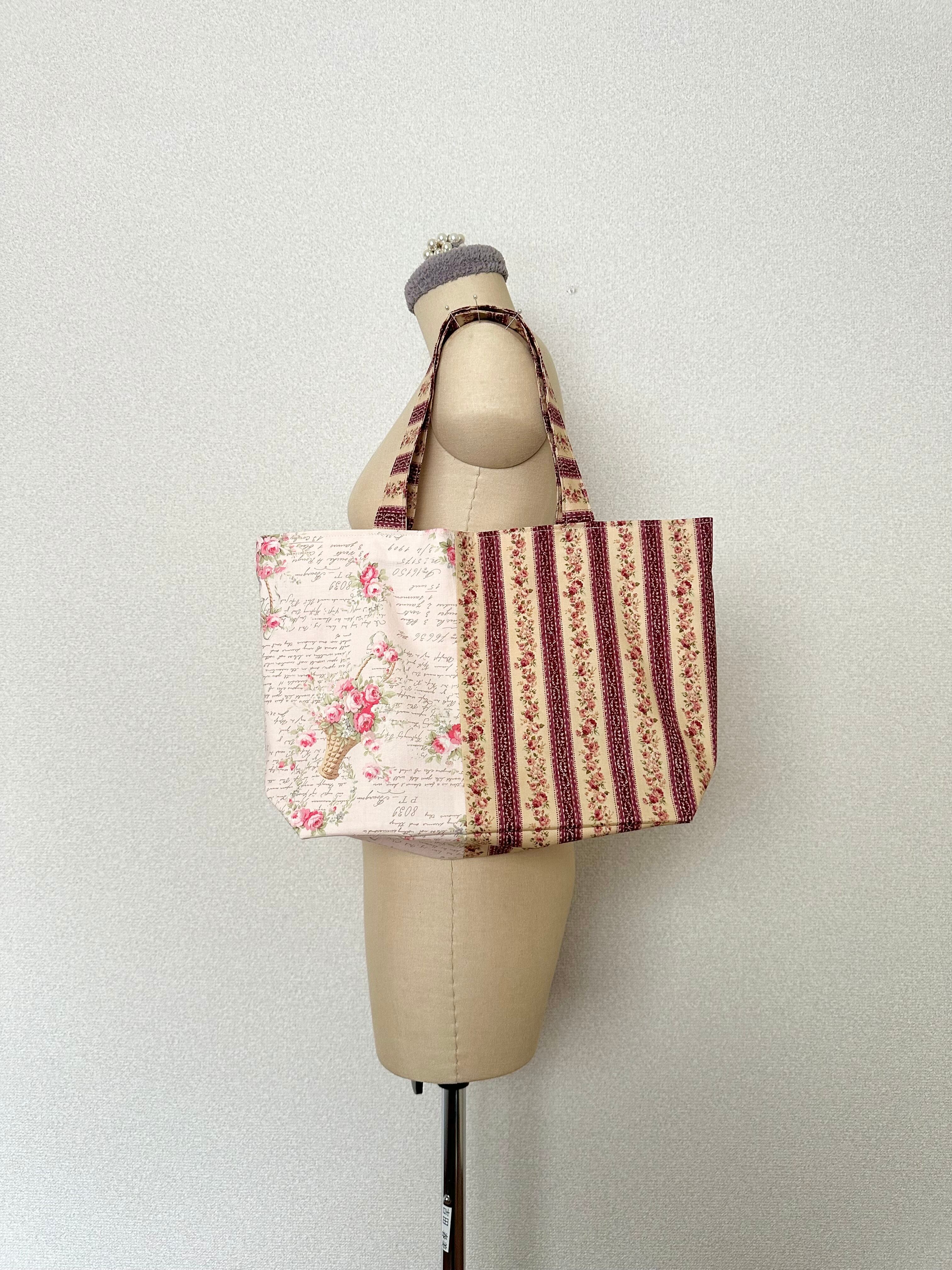 ロマンティックなバラ柄のバッグ リバーシブルバッグ トートバッグ 大きめバッグ