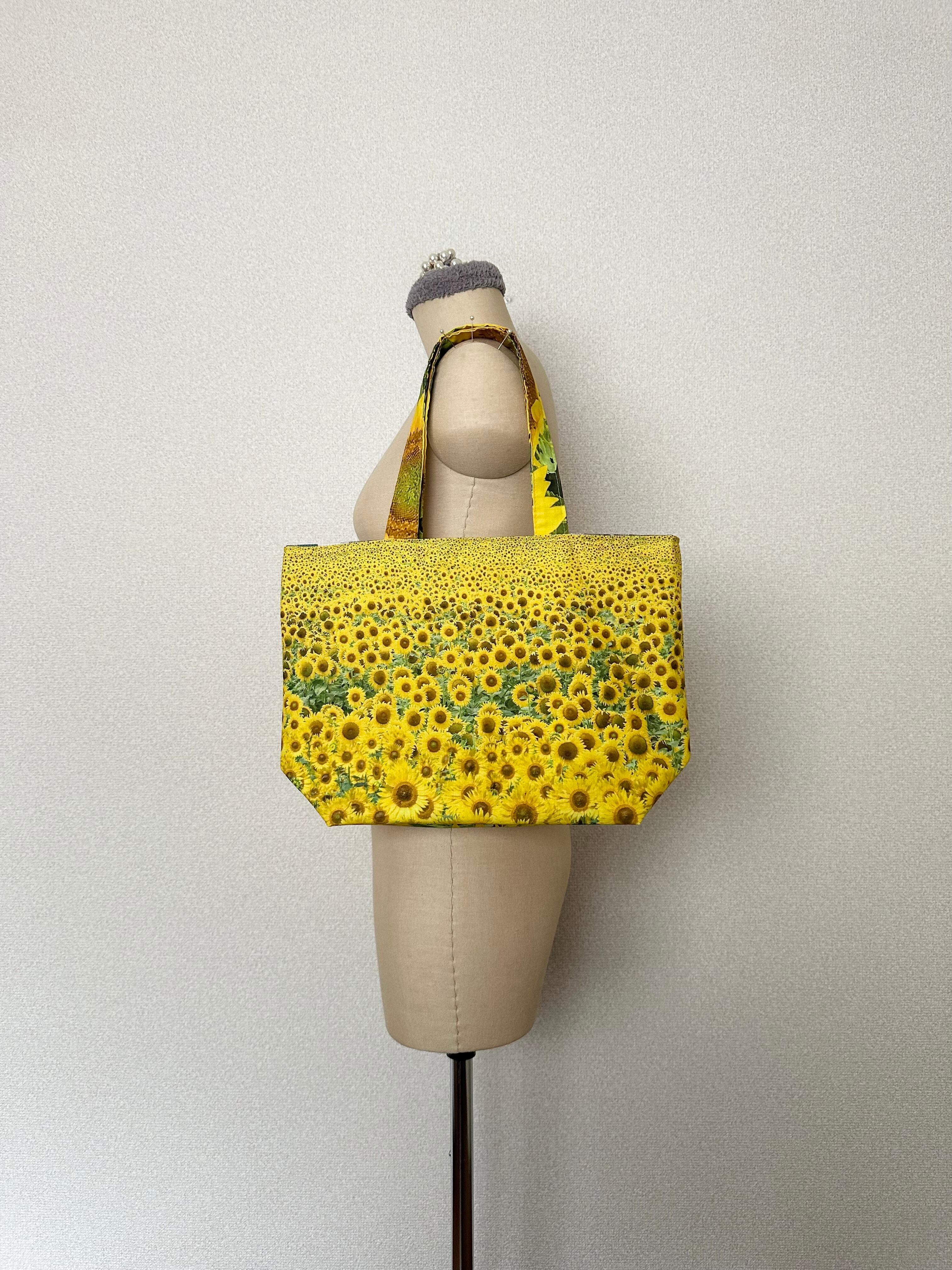見せ方色々☆ひまわりとリーフのバッグ リバーシブルバッグ トートバッグ