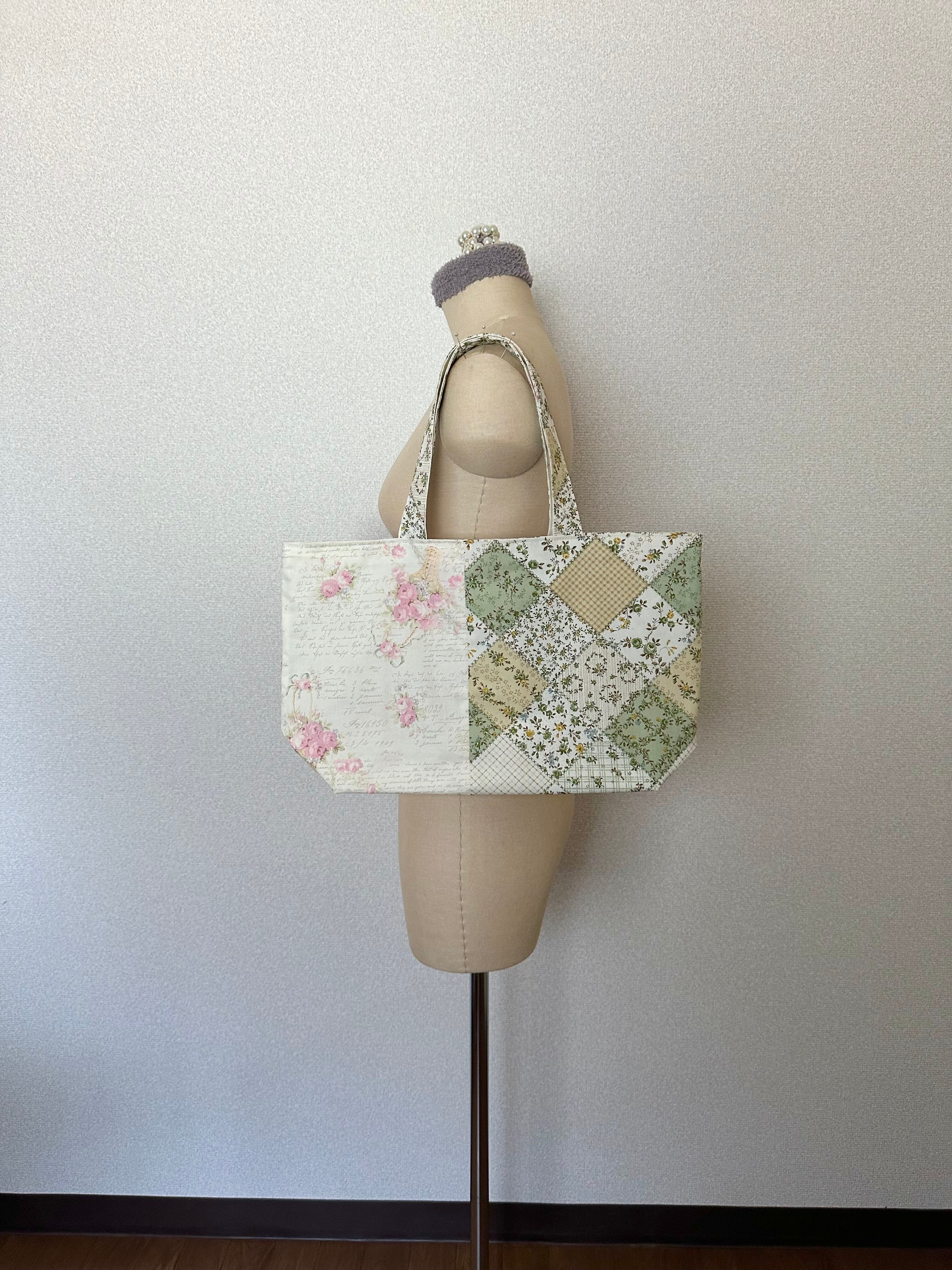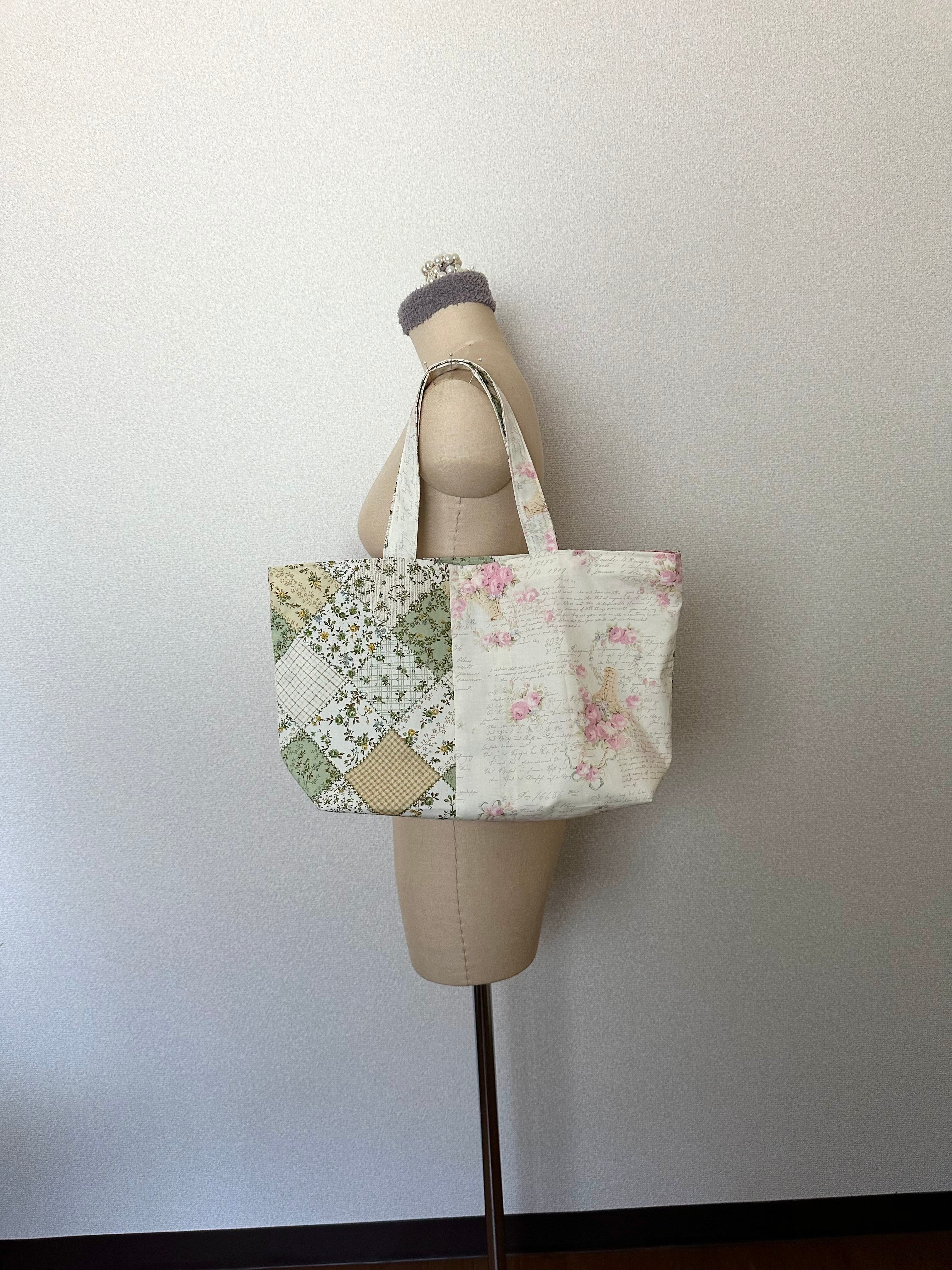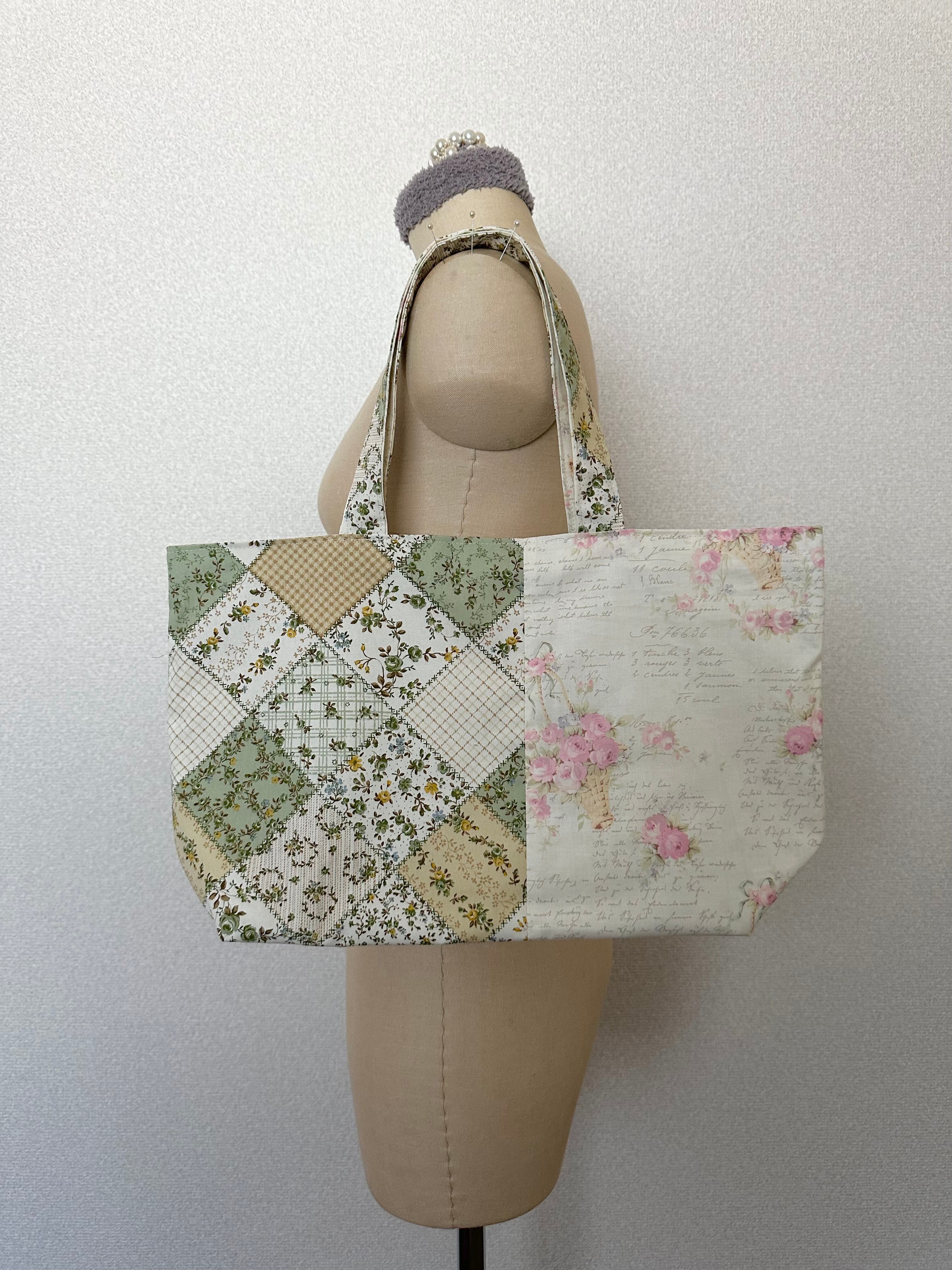 ロマンティックなバラ柄 パッチワーク柄 リバーシブルバッグ トートバッグ 大きめバッグ