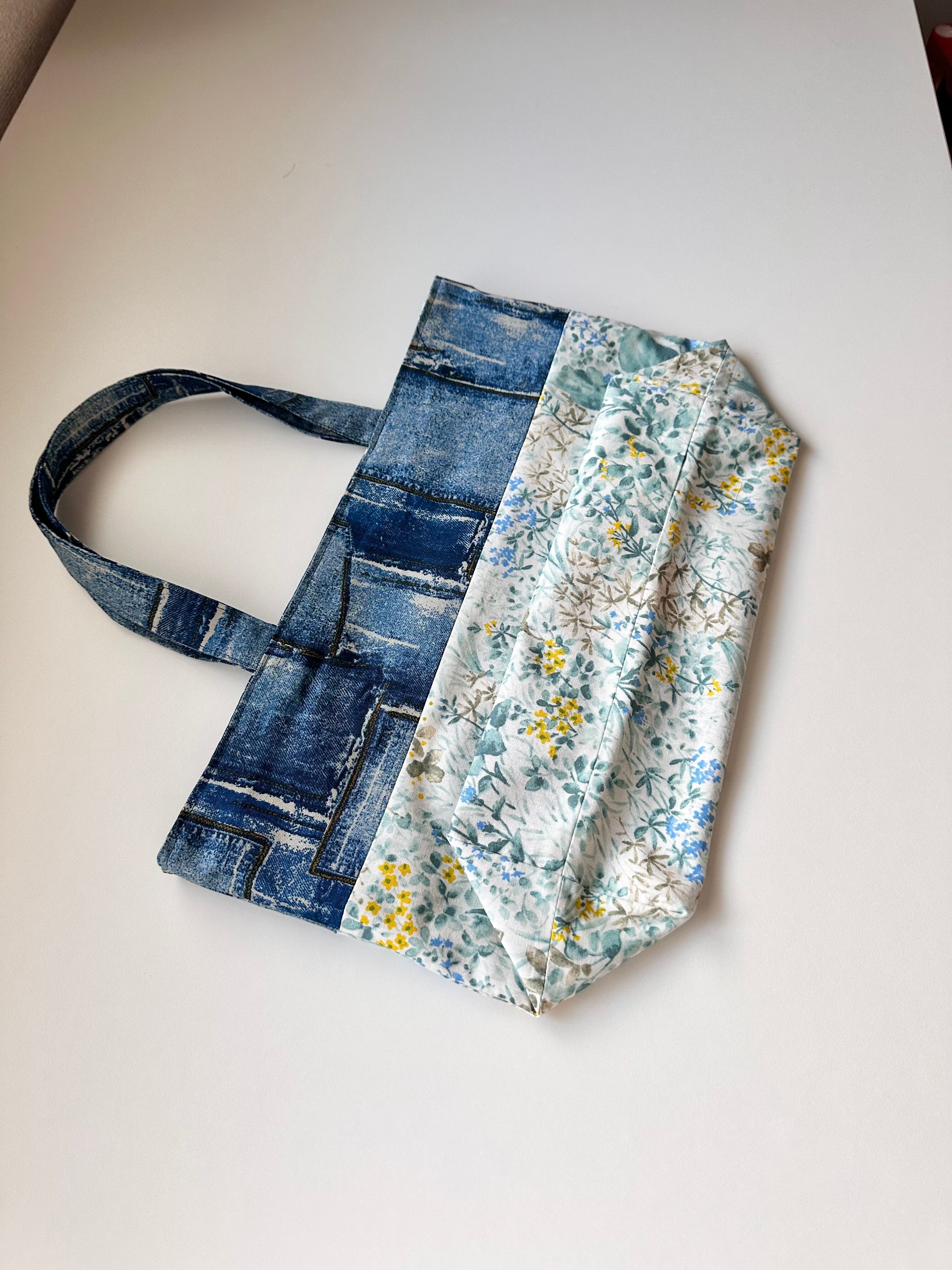 デニムと花柄のバッグ リバーシブルバッグ トートバッグ 大きめバッグ